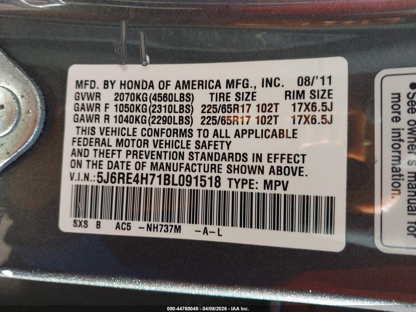 • 5J6RE4H71BL091518
