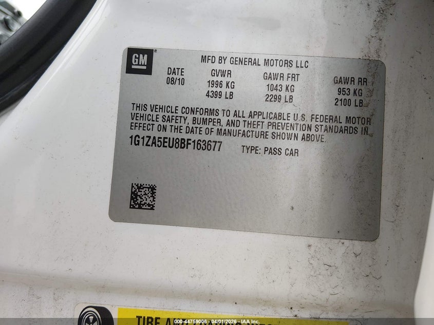 • 1G1ZA5EU8BF163677