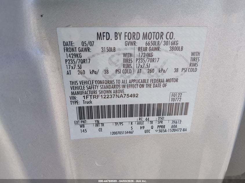 2007 FORD F-150 STX/XL/XLT for Sale in Lexington, SC