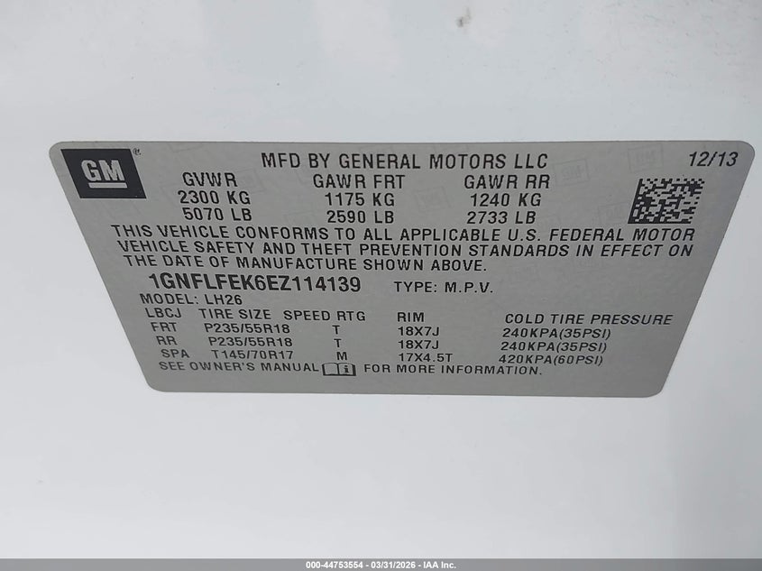 • 1GNFLFEK6EZ114139