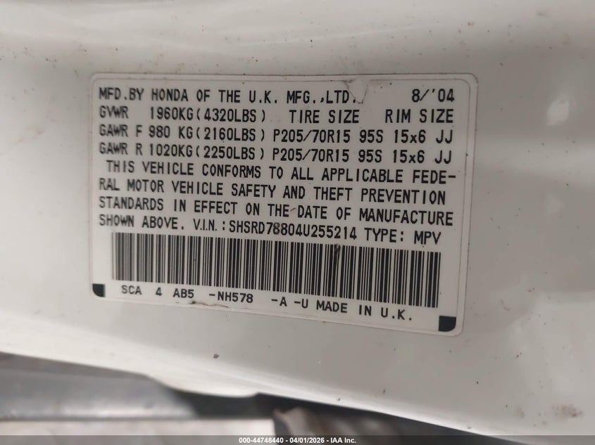 2004 HONDA CR-V EX for Sale in Rock Tavern, NY