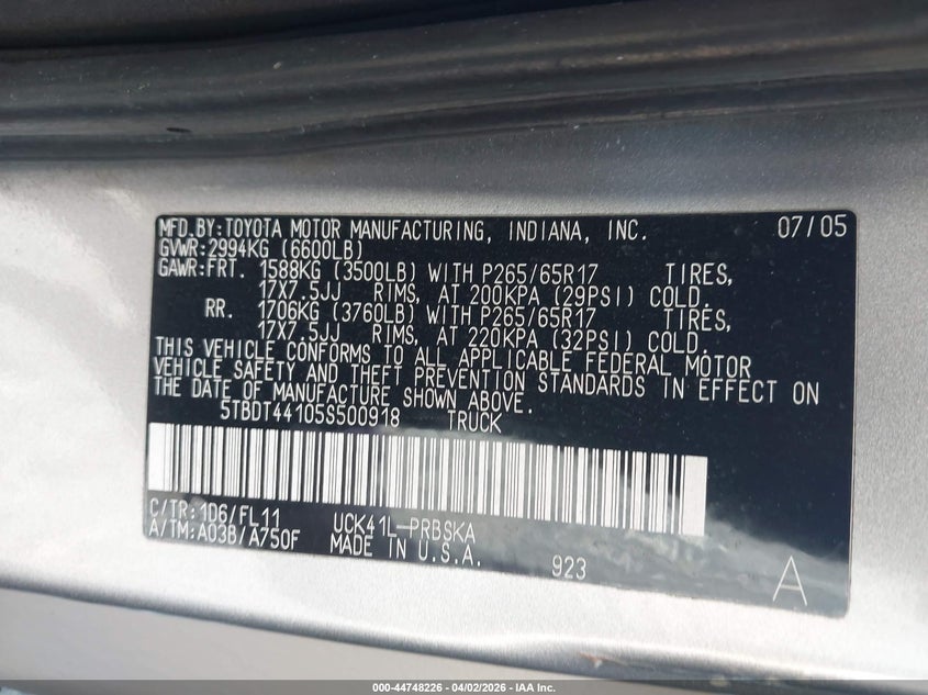 • 5TBDT44105S500918