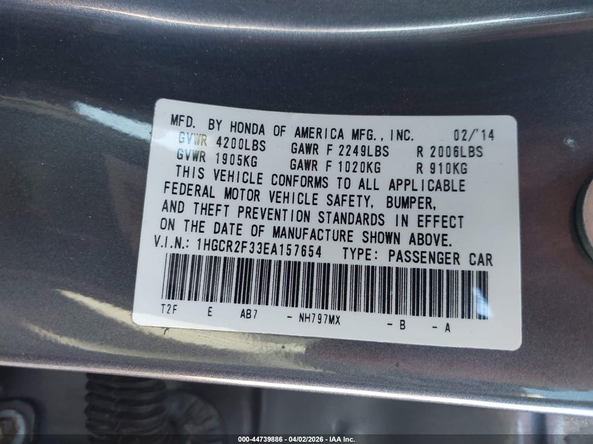 • 1HGCR2F33EA157654
