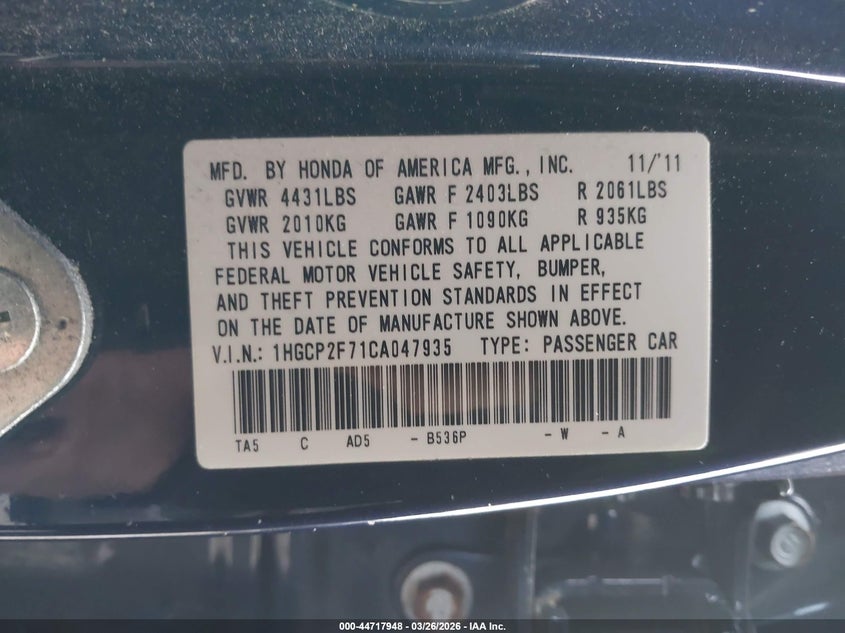• 1HGCP2F71CA047935