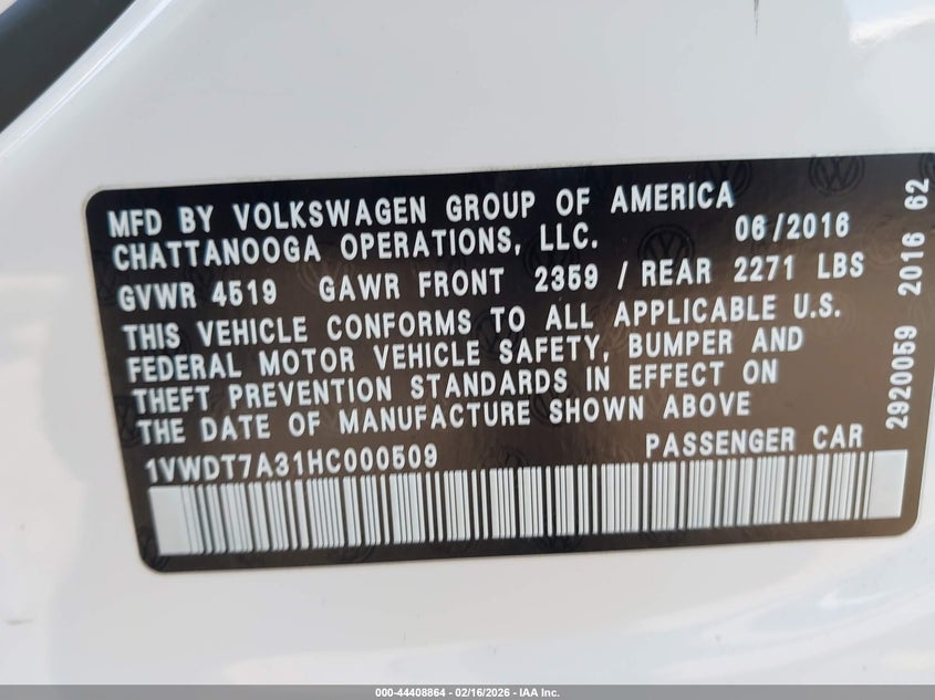 • 1VWDT7A31HC000509