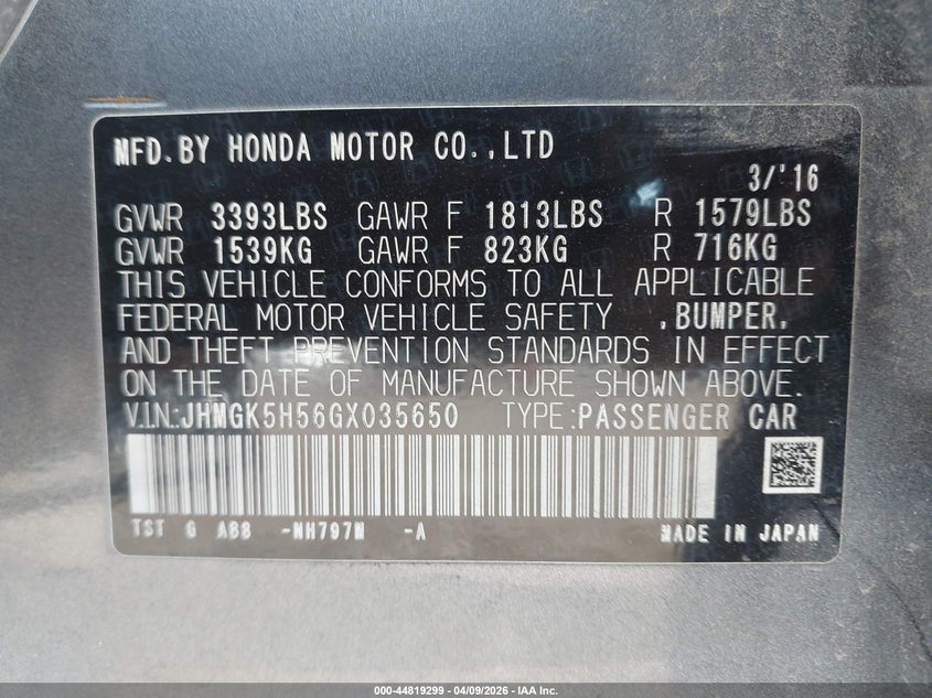 • JHMGK5H56GX035650