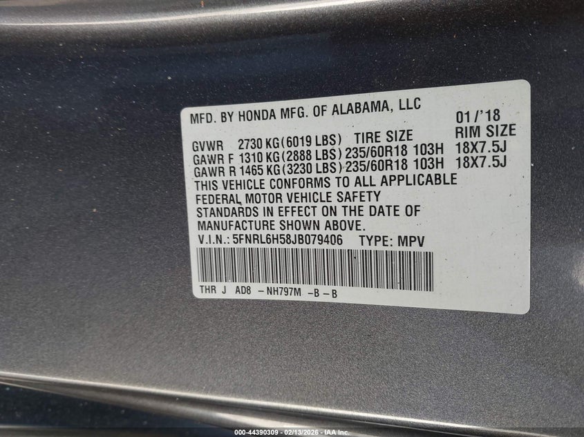 • 5FNRL6H58JB079406