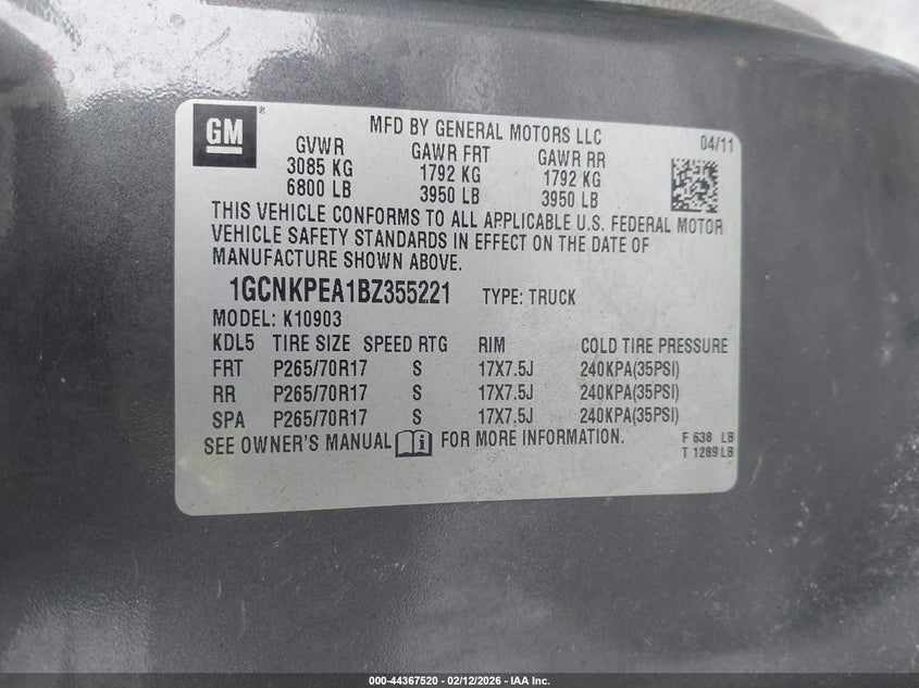 • 1GCNKPEA1BZ355221