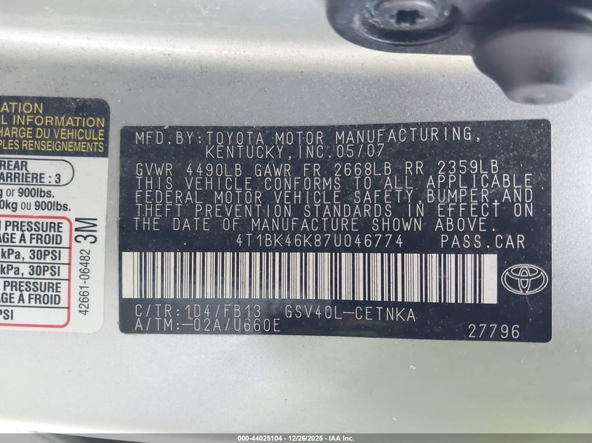 • 4T1BK46K87U046774