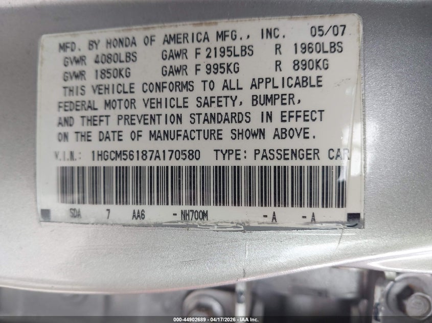 • 1HGCM56187A170580