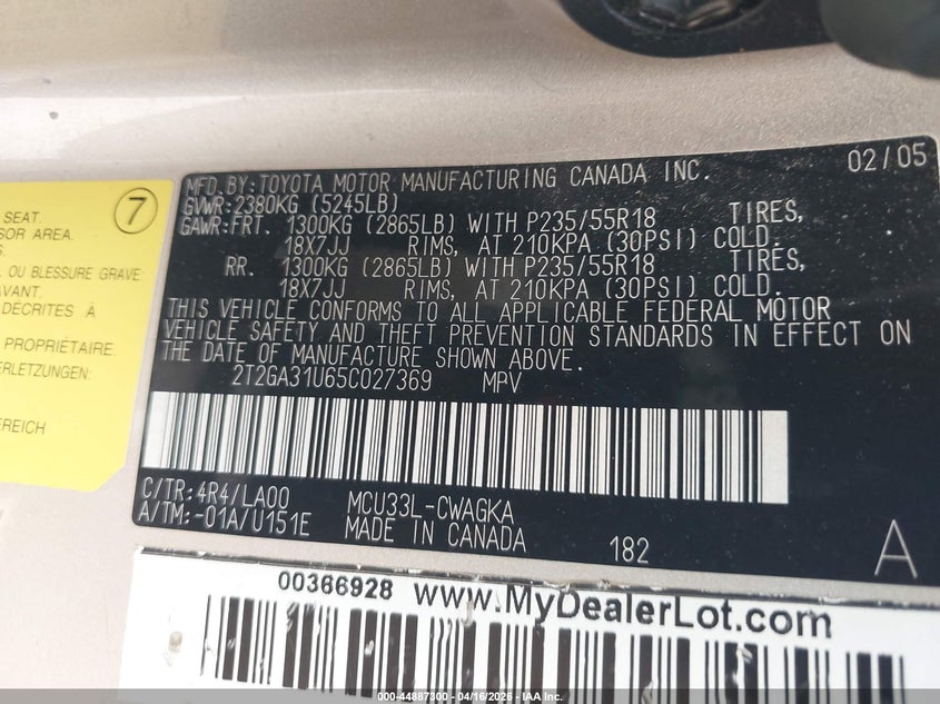 • 2T2GA31U65C027369