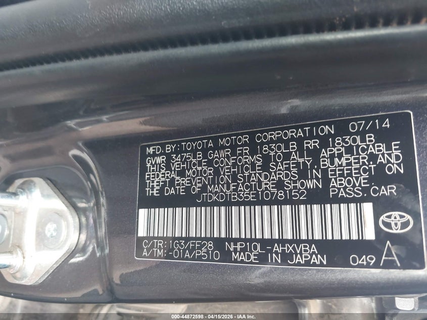 • JTDKDTB35E1078152