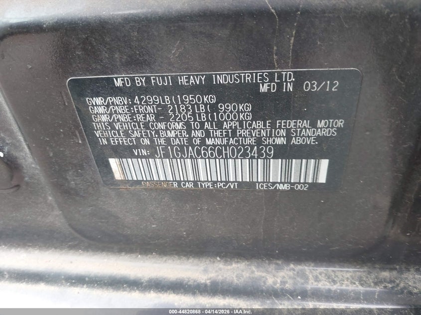 • JF1GJAC66CH023439