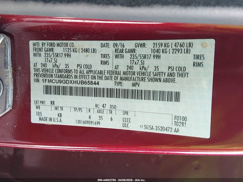 • 1FMCU9GDXHUB65844