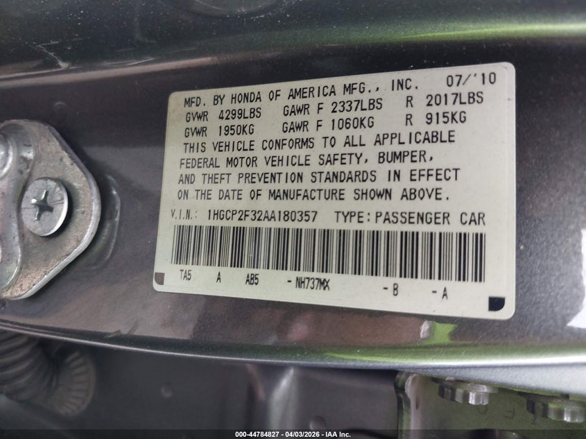 • 1HGCP2F32AA180357