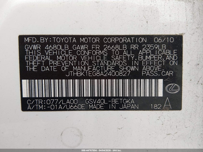 • JTHBK1EG8A2400827