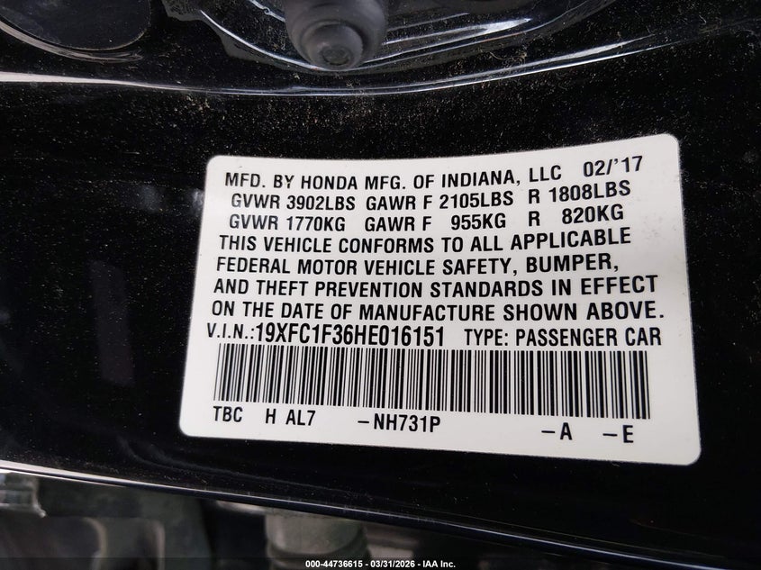 • 19XFC1F36HE016151