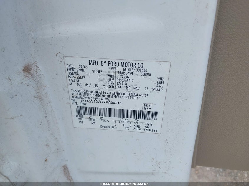• 1FTRW12W77FA09511