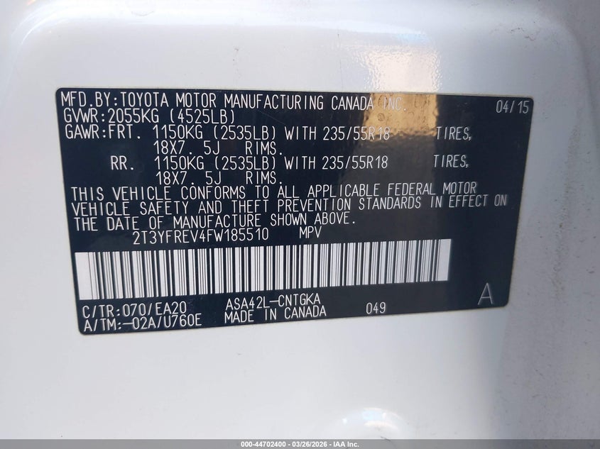 • 2T3YFREV4FW185510