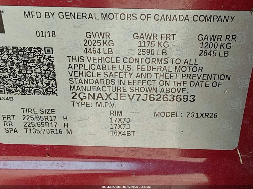 • 2GNAXJEV7J6263693