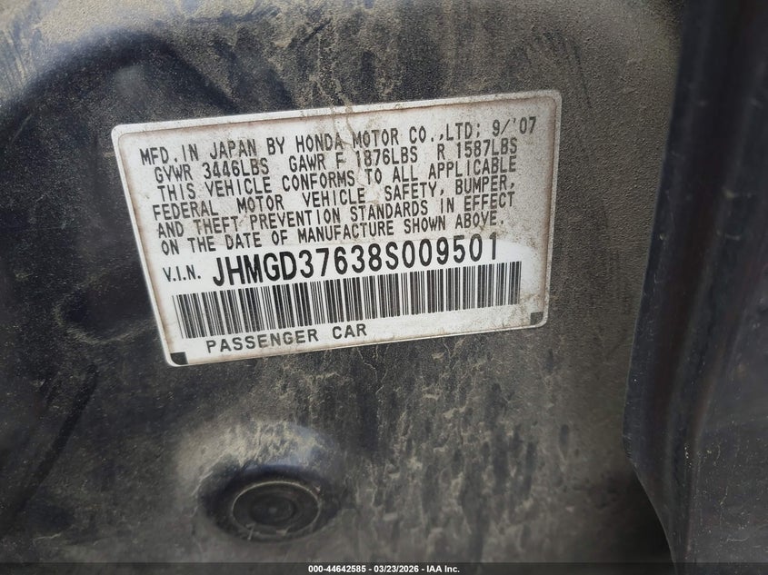 • JHMGD37638S009501