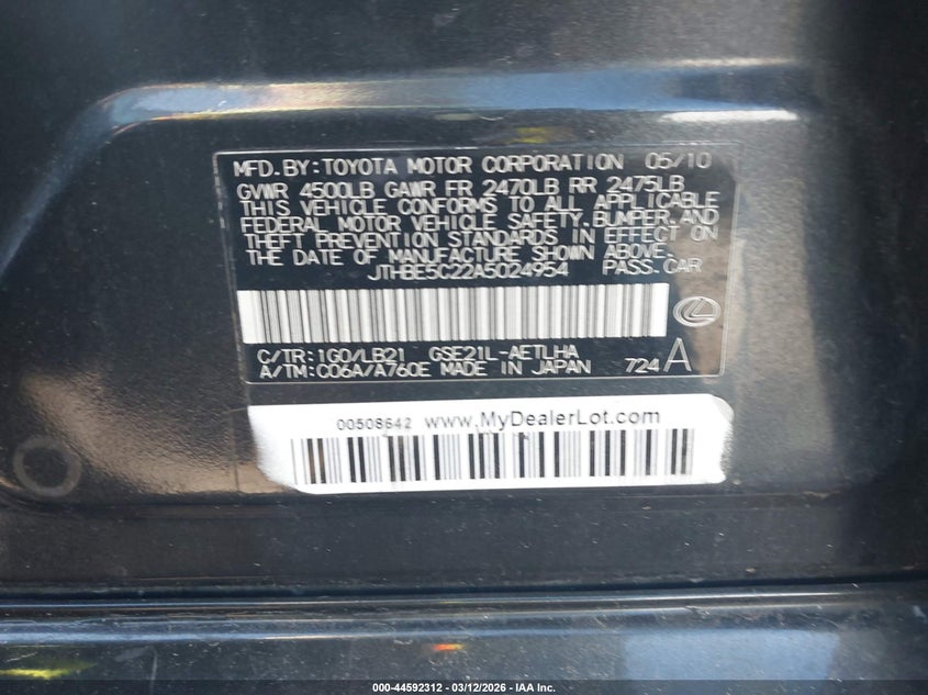 • JTHBE5C22A5024954
