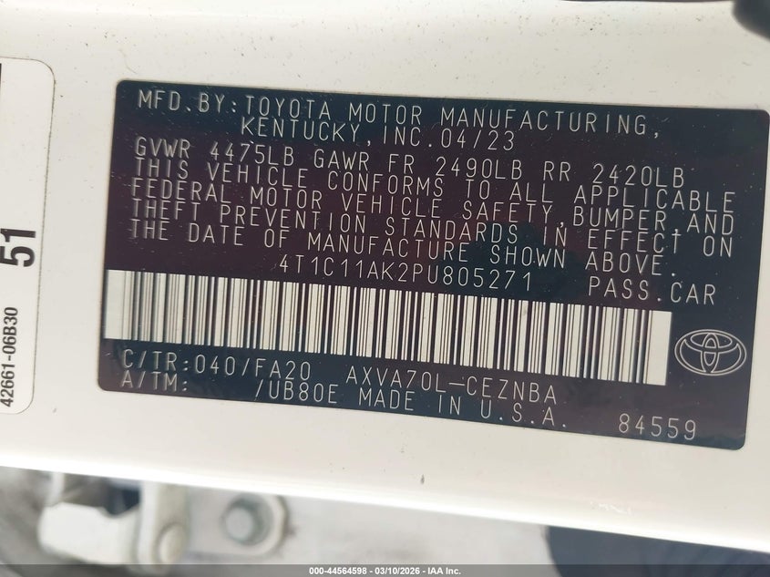 • 4T1C11AK2PU805271