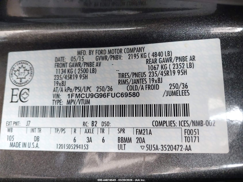 • 1FMCU9G96FUC69580
