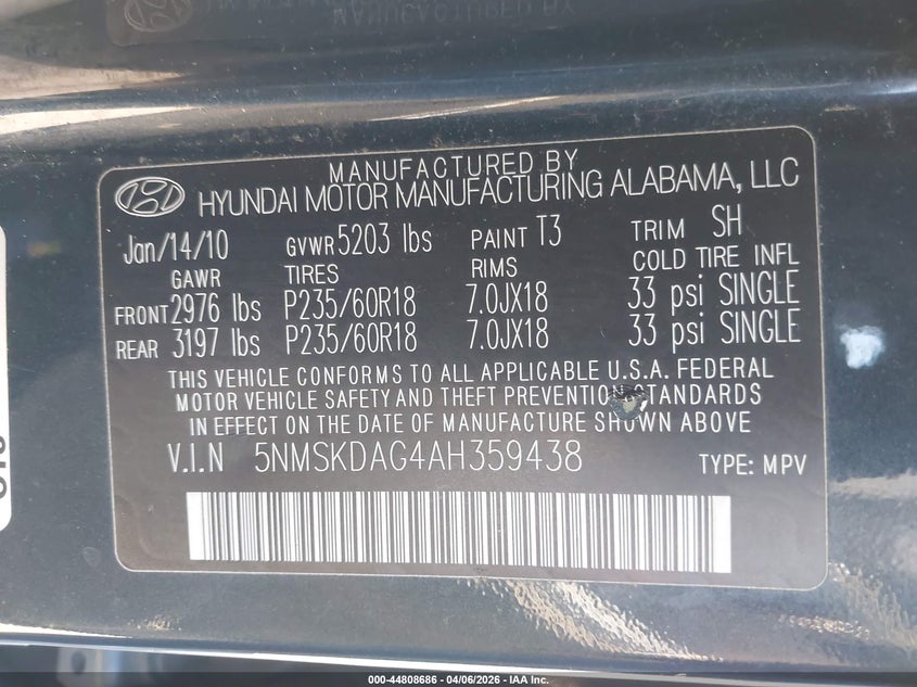 • 5NMSKDAG4AH359438