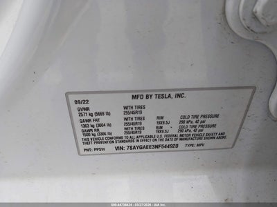 2022 TESLA MODEL Y LONG RANGE DUAL MOTOR ALL-WHEEL DRIVE for Sale in Electric Vehicle Auctions, None