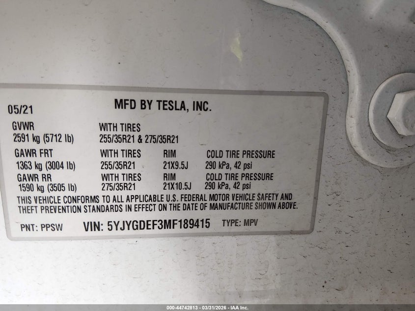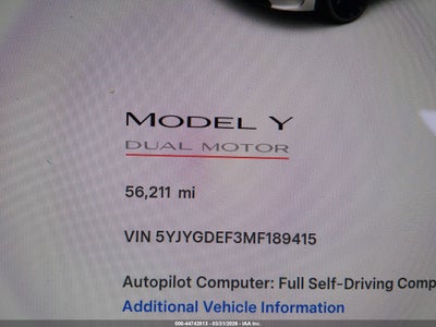 2021 TESLA MODEL Y PERFORMANCE DUAL MOTOR ALL-WHEEL DRIVE for Sale in Electric Vehicle Auctions, None