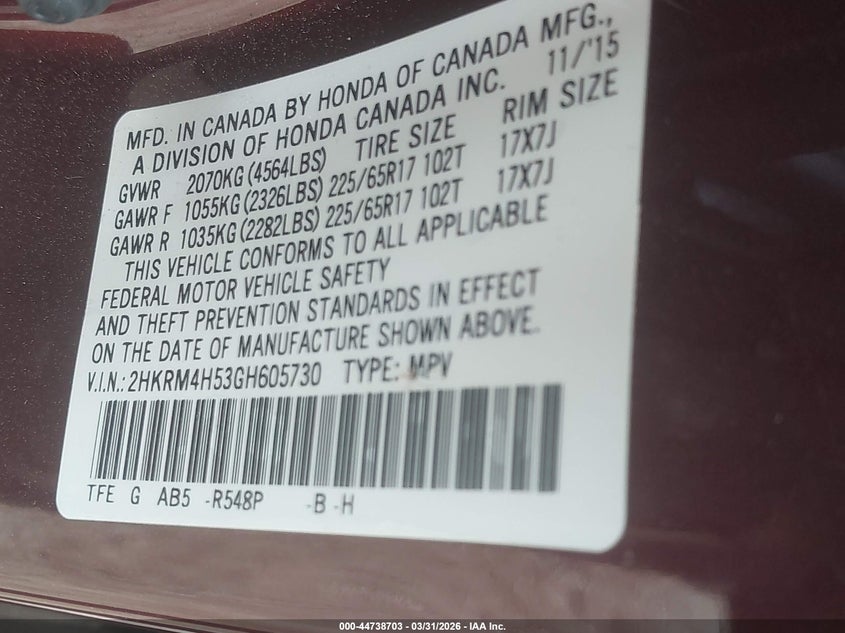 • 2HKRM4H53GH605730