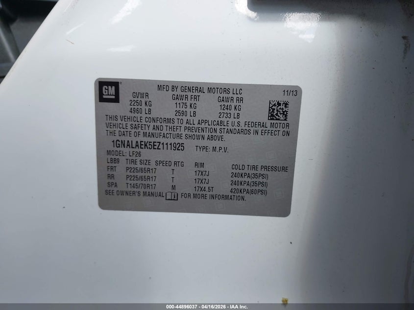 • 1GNALAEK5EZ111925