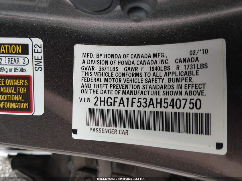 • 2HGFA1F53AH540750