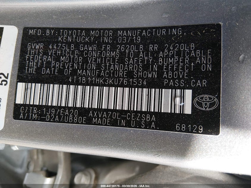 • 4T1B11HK3KU761534