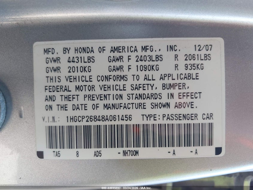 • 1HGCP26848A061456