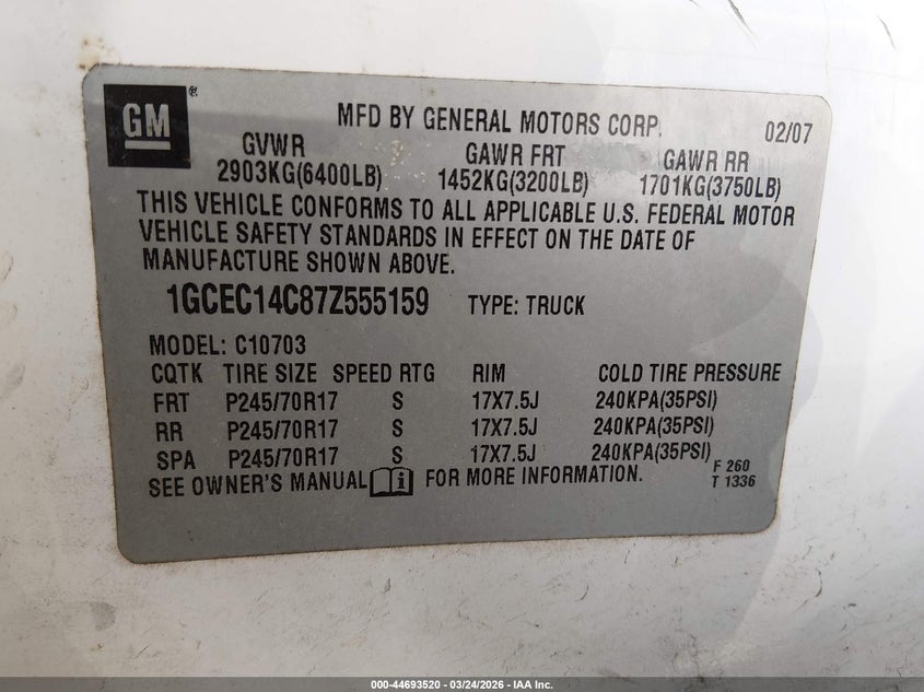 • 1GCEC14C87Z555159