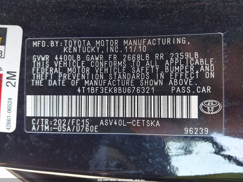 • 4T1BF3EK8BU676321