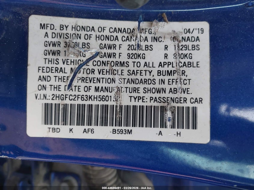 • 2HGFC2F63KH560152