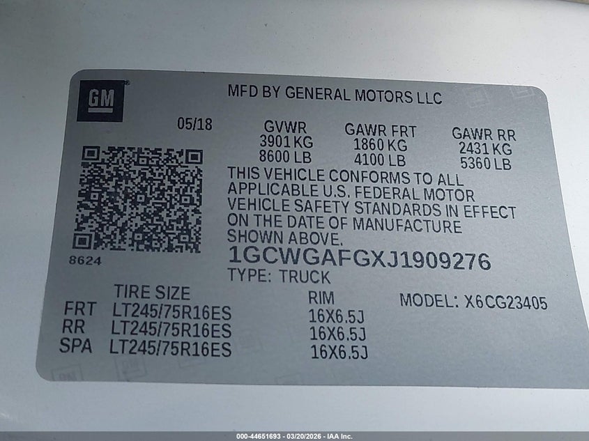 2018 CHEVROLET EXPRESS 2500 WORK VAN for Sale in York Springs, PA