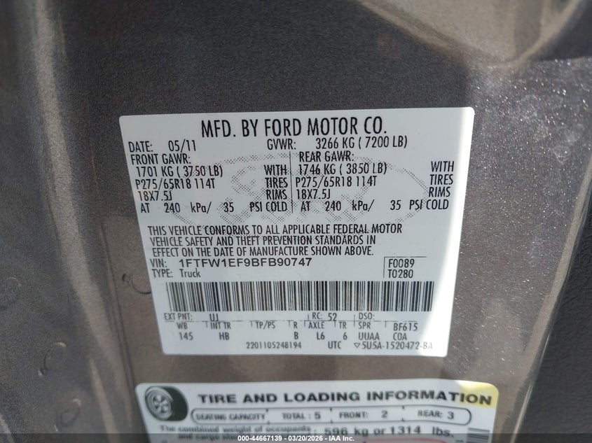 • 1FTFW1EF9BFB90747