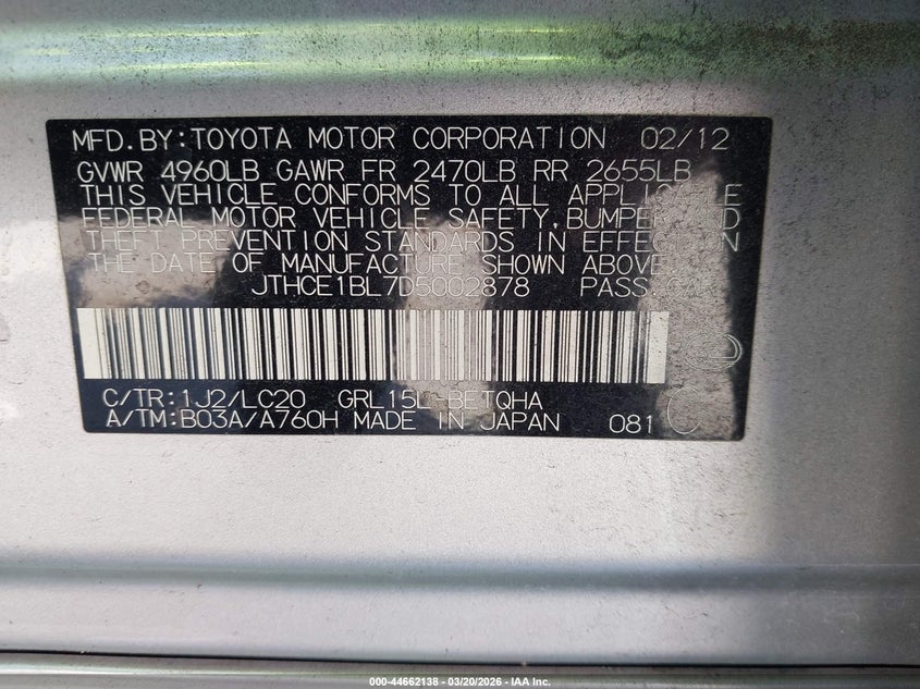 • JTHCE1BL7D5002878