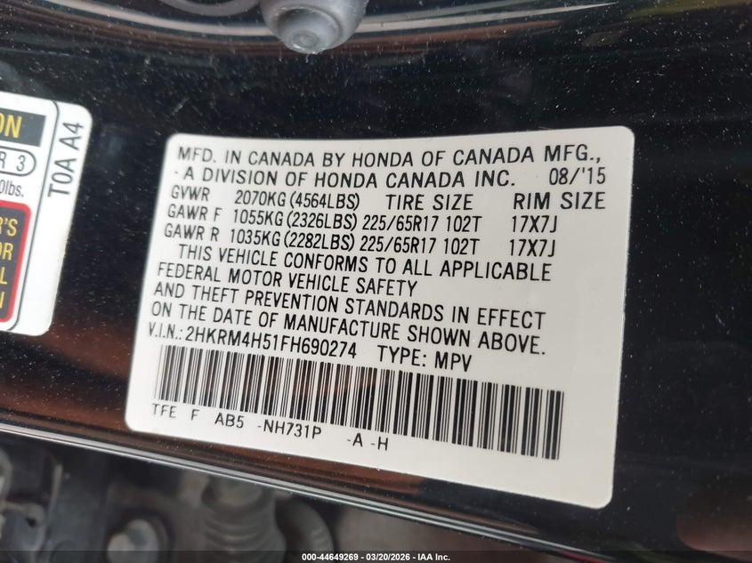 • 2HKRM4H51FH690274