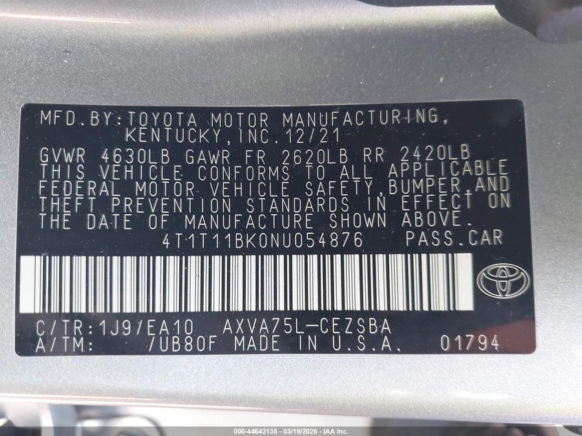 • 4T1T11BK0NU054876