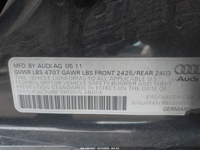 • WAUAFAFL9BN054913