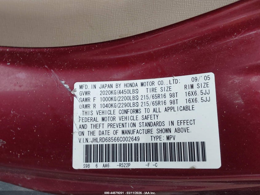 2006 HONDA CR-V LX for Sale in Inpolis, IN