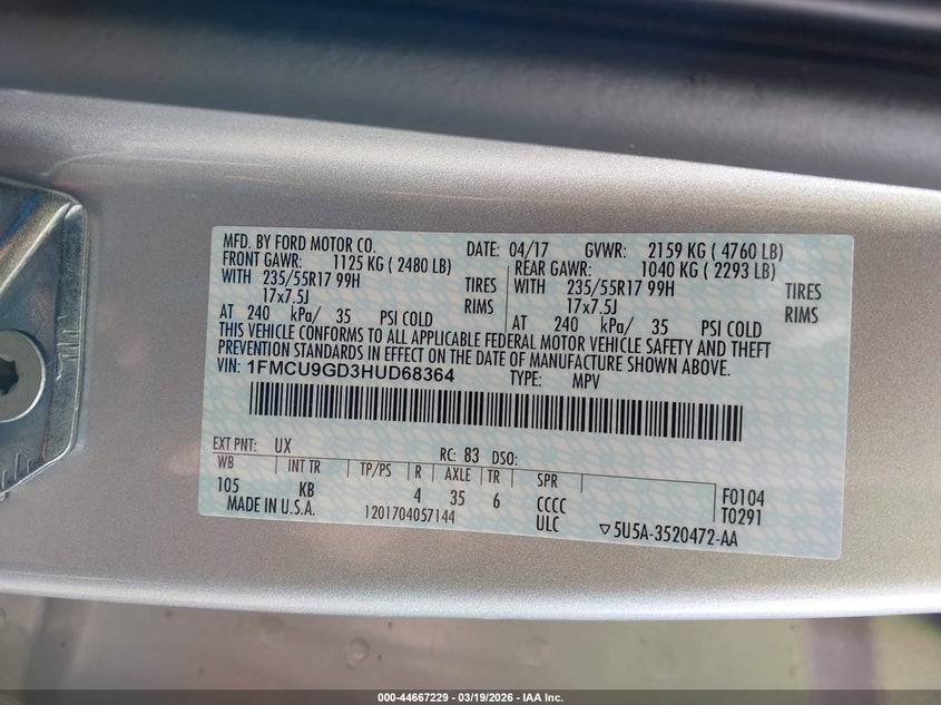 • 1FMCU9GD3HUD68364