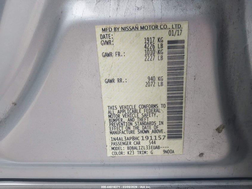 • 1N4AL3AP8HC191157