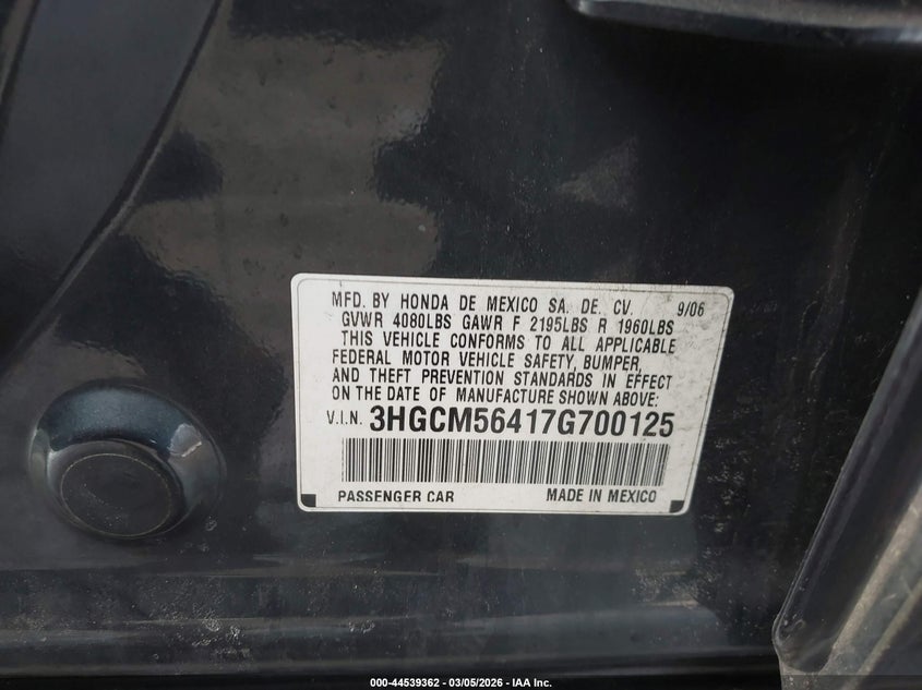 2007 HONDA ACCORD 2.4 LX for Sale in Brandywine, MD