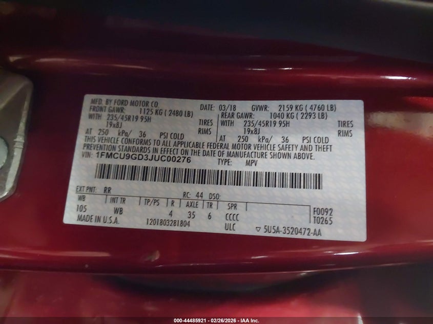 • 1FMCU9GD3JUC00276